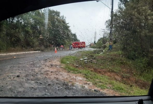 Ventania derrubou árvore na Av. Tancredo Neves