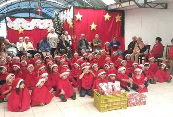 Alunos visitam Lar dos Velhinhos, apresentam músicas natalinas, entregam presentes e interagem co...