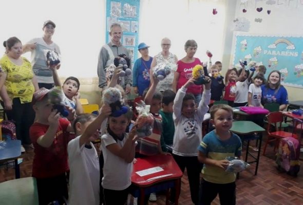 Usuários do CAPS de Mafra presentearam alunos do CMEI Restinga com bonecos de pano confeccionados...