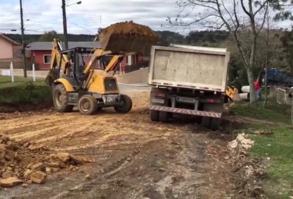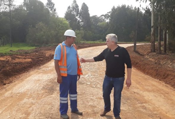Jorge Quege, acompanha o início da pavimentação do Lageado