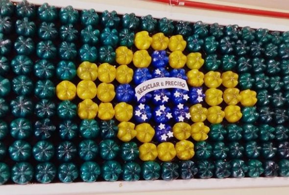 Centro Educativo Itaiópolis usou garrafas pets para fazer bandeira para a semana da pátria