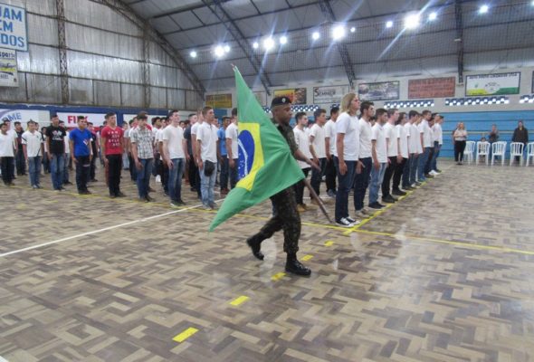 Dispensados do serviço militar, jovens fazem juramento à Bandeira