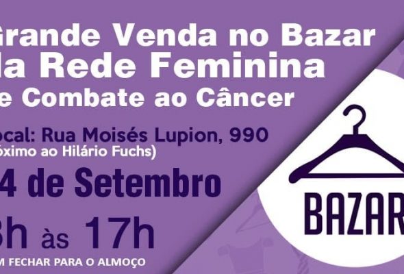 Rede Feminina de Combate ao Câncer promove bazar neste sábado (14)