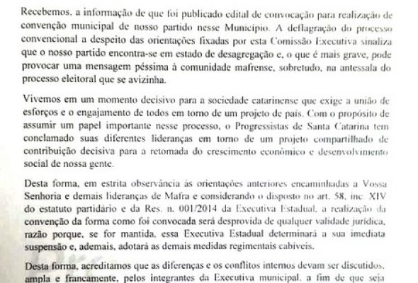 Diretório estadual não homologa eleição do PP de Mafra