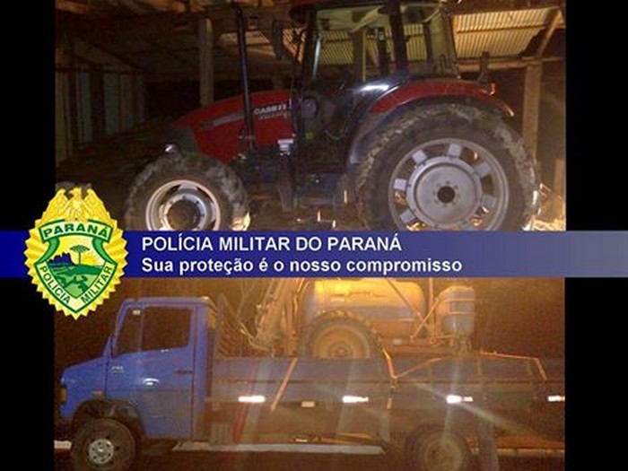 Na última terça-feira (29) o 2º Pelotão da Policia Militar de Rio Negro, recebeu a informação do serviço reservado de que um trator e um pulverizador que teriam sido furtados na cidade da Lapa no dia 26 de agosto estariam deslocando pela localidade rural de Fazendinha em direção a Rio Negro. O pulverizador estaria em cima de um caminhão azul, acompanhado de um veÃculo de cor preta, que fazia a função de batedor.