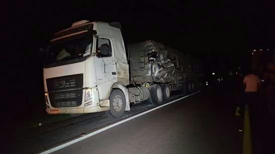 A PolÃcia Rodoviária Federal (PRF) divulgou detalhes sobre o grave acidente com um ônibus que transportava estudantes universitários na BR-116, na noite de terça-feira (4), em Campo do Tenente. De acordo com a PRF, um caminhão teria invadido a faixa contrária.