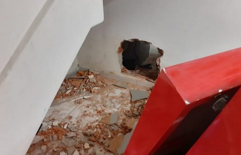Foi constatado um buraco na cerca e na parede nos fundos da loja. Foram acionados o Instituto Geral de PerÃcias (IGP) e a PolÃcia Civil de Mafra, os quais assumiram a ocorrência e as investigações referentes ao furto.
