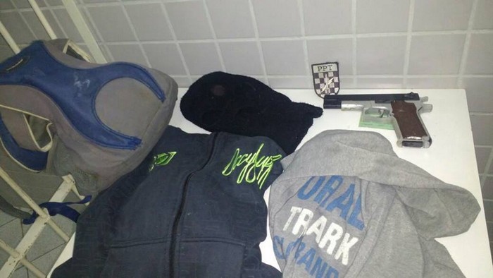Os elementos tentaram se evadir ao avistarem os policiais, sendo efetuada a prisão de dois homens, um com 22 anos e outro com 23 anos de idade. Eles confessaram participação no assalto em Rio Negro e também assalto a uma mercearia na Vila Ivete na última quarta-feira (01/11). Foi encontrado de posse do homem de 22 anos um “simulacro” de pistola.