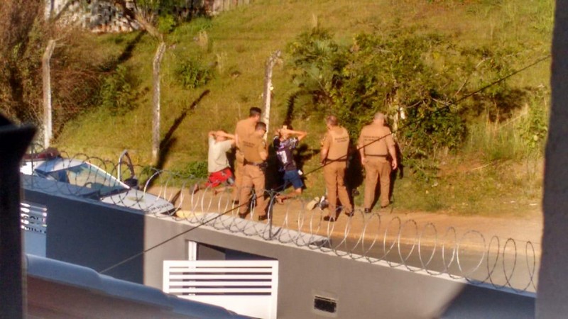 Diante destas informações a equipe retornou ao local e com as características dos autores os abordaram em via pública e os identificaram, sendo dois maiores de idade e um menor de idade.