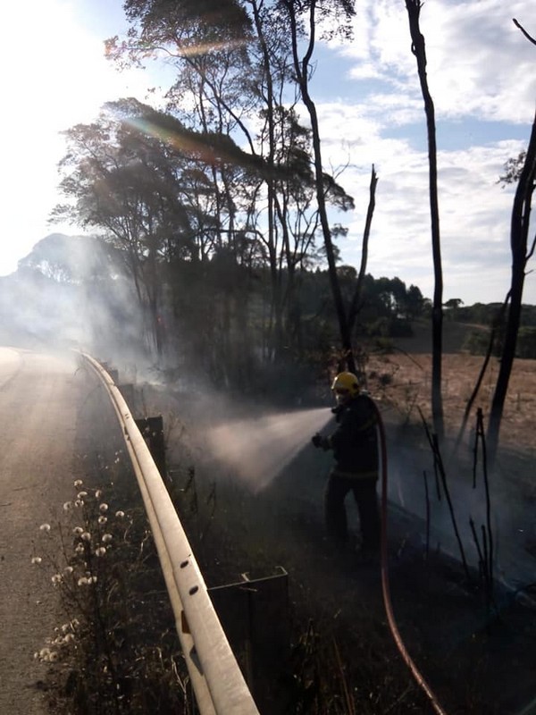Foram utilizados três mil litros de água, para a extinção do fogo que atingiu uma área de vegetação alta com aproximadamente 3000 m2, o qual apresentava riscos ao tráfego devido ao grande volume de fumaça, prejudicando a visibilidade.