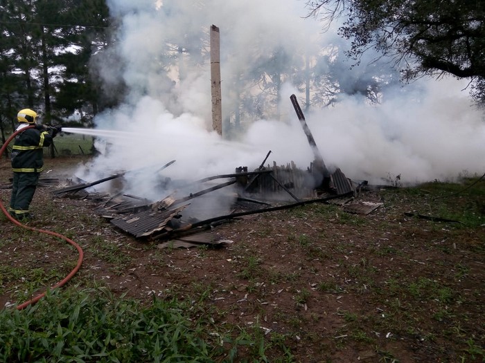 A residencia com aproximadamente 40 metros quadrados, toda estruturada em madeira, telhado de Eternit e sem energia elétrica, foi encontrada na fase de diminuição das chamas.