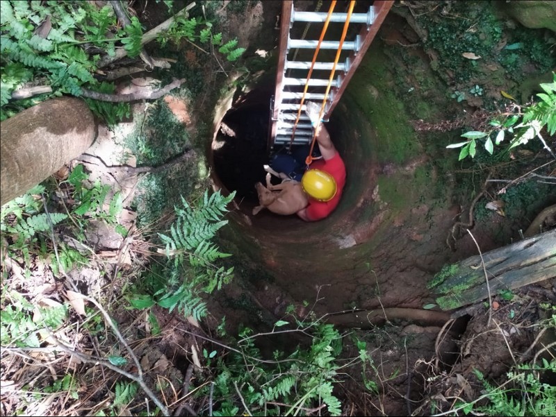 Os bombeiros utilizaram as técnicas de salvamento em altura para efetuar a descida e resgatar o animal e levá-lo até a superfÃcie. A equipe dos bombeiros logrou êxito e salvaram o animal do fundo do poço e o deixaram são e salvo aos cuidados de uma funcionária da Prefeitura.