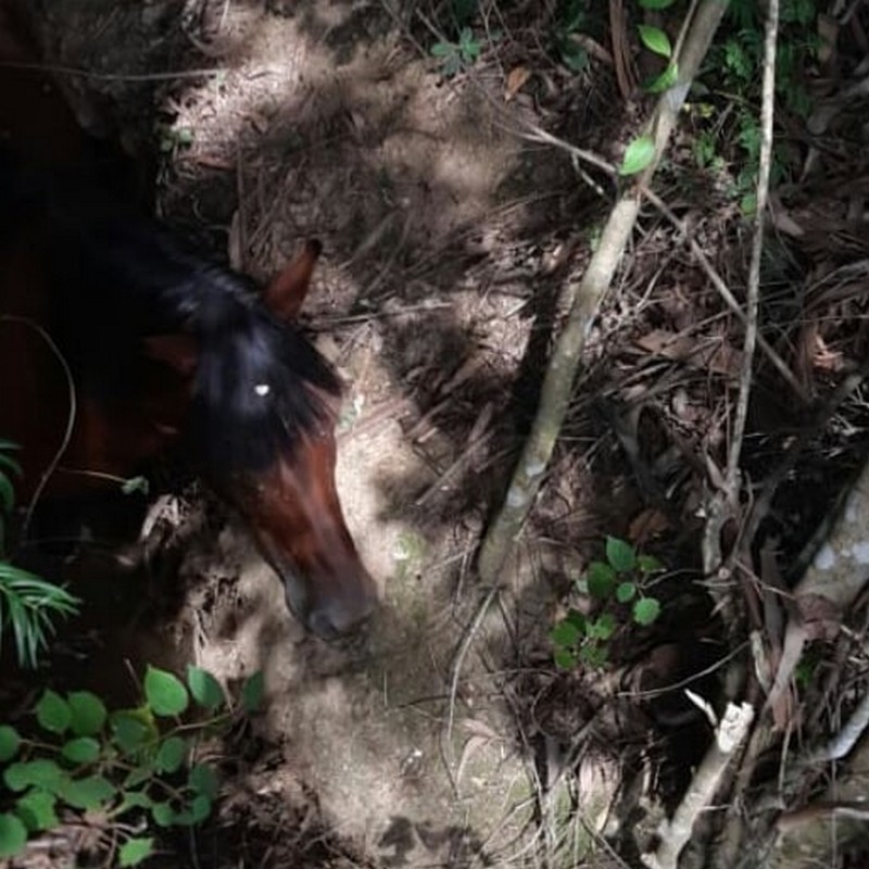O animal acabou caindo numa vala de aproximadamente 2.50 metros de profundidade. Os bombeiros realizaram o desbarrancamento a frente do animal, resultando numa rampa com degraus, facilitando a sua retirada por conta própria da vala.