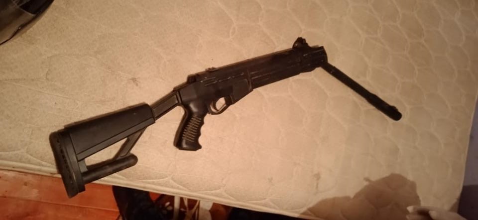 Na casa do suspeito de autoria do homicÃdio os policiais encontraram uma espingarda de pressão de fabricação nacional, modificada para munição calibre 22, sendo a possÃvel arma utilizada no crime, a qual foi apreendida. Foram acionados o Instituto Geral de PerÃcias (IGP) e a PolÃcia Civil de Mafra, a qual assumiu a investigação e conclusão da ocorrência.
