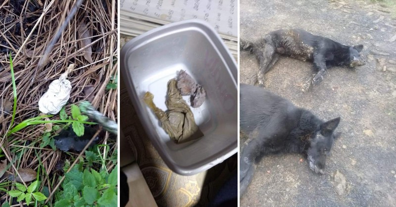 Segundo o relato da dona dos cães, uma pessoa “sem coração” colocou pacotinhos de veneno dentro de um frango para dar aos animais. A pessoa ficou fazendo barulho no meio do mato próximo a casa da família para que os cachorros perceberem e fossem até o local onde estava o frango envenenado.