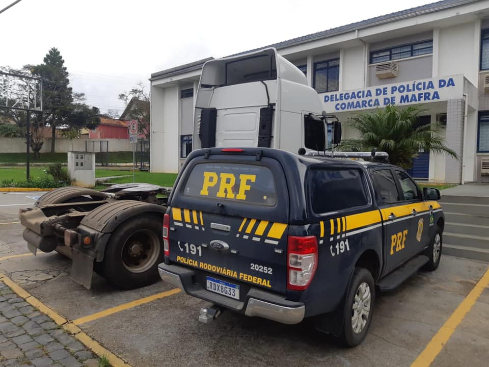 Policiais rodoviários federais apreenderam na tarde de domingo (24), um caminhão trator com placa trocada para fugir da fiscalização, em Mafra/SC