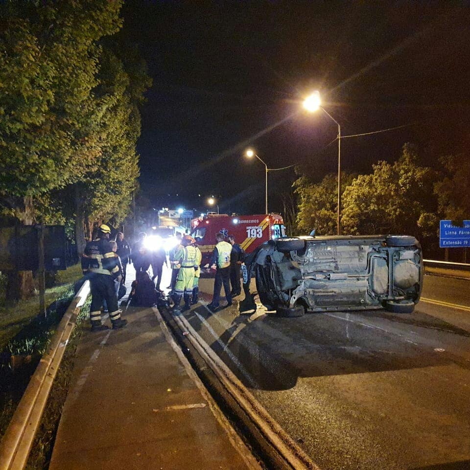 Por volta das 03h13 deste domingo (24), as Guarnições das viaturas ASU 467 e ABTR 100 do Corpo de Bombeiros de Mafra, acionadas pelo COBOM, deslocaram até a Rodovia BR-116, próximo à Ponte Interestadual Engenheiro Moacyr Gomes e Souza, conhecida como “Ponte dos Peixinhos”, para atender um acidente de trânsito tipo capotamento. Encontrando no local o veículo Fiat Pálio de Placas de Santa Cecília- SC capotado sobre a via.