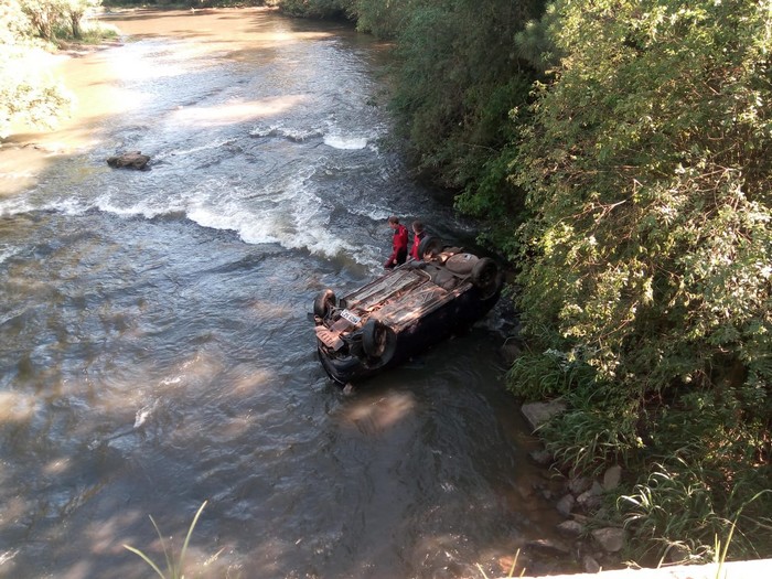 Por volta das 08h42 deste domingo (25), as Guarnições do Corpo de Bombeiros de Mafra deslocaram-se até a localidade de Avencal de Cima, Estrada Geral, onde populares encontraram um veÃculo Gol dentro das águas do Rio da Areia. Chegando ao local a Guarnição acessou ao veÃculo, um Gol azul quatro portas sem placas, em busca de supostas vÃtimas, porém não sendo encontrado iniciou-se então as buscas pelas proximidades, já que no interior do veÃculo também possuÃa uma cadeirinha para crianças e sendo avistado uma peça de roupa infantil a alguns metros rio abaixo. Assim que foi localizado uma das placas e um celular, sendo retirado o chip e instalado em outro equipamento, acessando os contatos, sendo possÃvel saber que o condutor do veÃculo um masculino de 25 anos e um segundo masculino que era passageiro encontravam-se em casa, sem graves ferimentos. Sendo assim foram encerradas as buscas retornando as guarnições ao PBM.