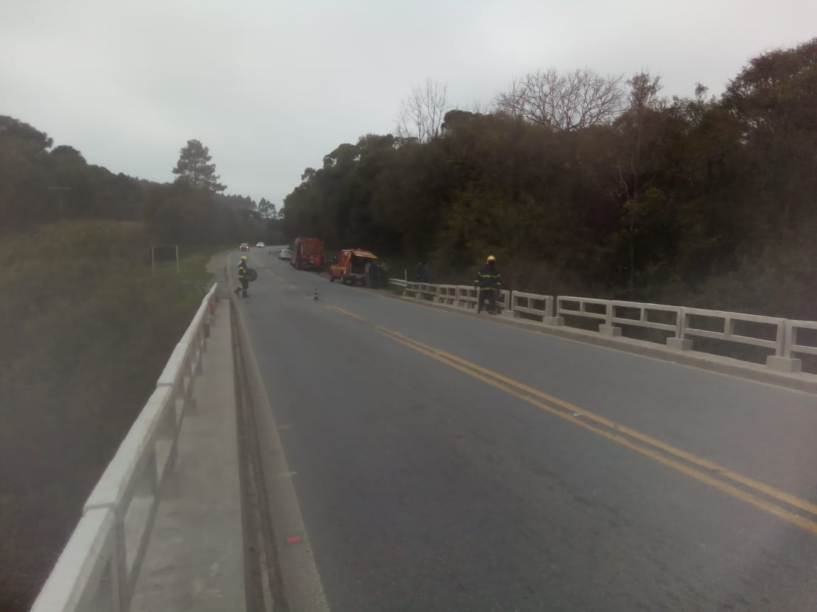 Por volta das 08h30 deste domingo, o Corpo de Bombeiros de Mafra atendeu a uma ocorrência na BR 280, km 153,5, sentido Mafra à Rio Negrinho. O veículo Fiat Siena com placas de União da Vitória-PR encontrava-se dentro das águas do Rio da Areia, tendo como condutor um masculino de 27 anos morador de Monte Castelo-SC, encontrado as margens da rodovia estando consciente e orientado, referindo dores no membro inferior esquerdo, terço médio (joelho), e a passageira uma feminina de 33 anos moradora de Joinville-SC, que também encontrava-se as margens da rodovia, estando consciente e orientada, sem lesões aparentes.