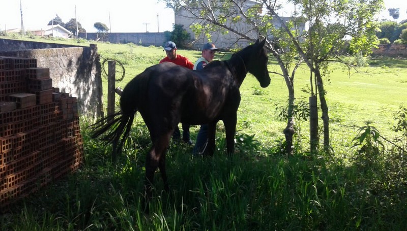 Os bombeiros encontraram o animal no interior de uma propriedade particular, nas proximidades da Rodovia BR 116. Ao tentar capturá-lo o cavalo tomou destino para via pública (Rua Benemérito Paulo Frogel), e após conseguir cercá-lo, o mesmo foi contido e capturado.