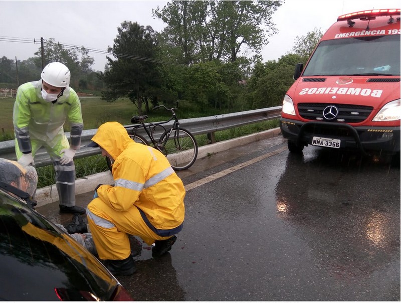 A equipe do Corpo de Bombeiros de Mafra por volta das 08h50min se deslocou até a BR-116, próximo ao centro de serviços da Prefeitura, para atender uma queda de um ciclista.
