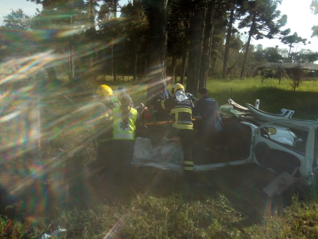 A colisão seguido de capotamento envolveu o veículo Ford Ka, tendo como condutora uma feminina de 33 anos, que encontrava-se no interior do veículo, estando consciente e orientada, com dores no membro superior esquerdo (terço medial). Ela foi amparada pela guarnição de Bombeiros Militares de Rio Negrinho que retornavam de serviço. Foi realizado o desencarceramento para retirar a vítima em ângulo zero, e após atendimento pré-hospitalar foi conduzida ao Hospital São Vicente de Paulo.