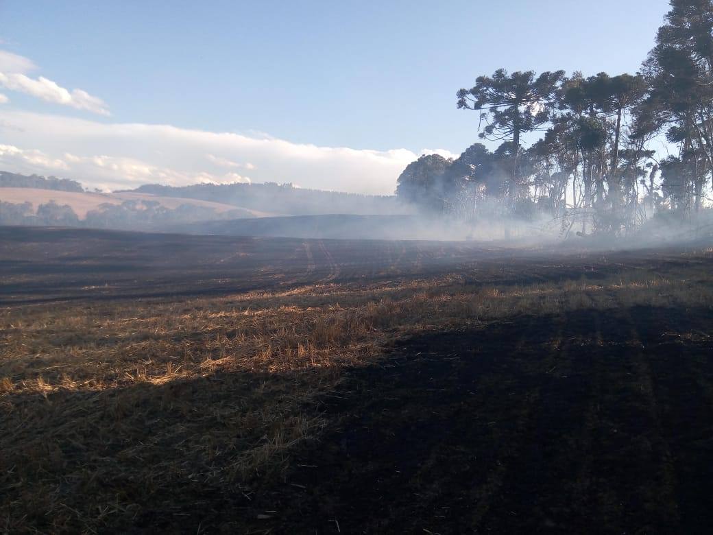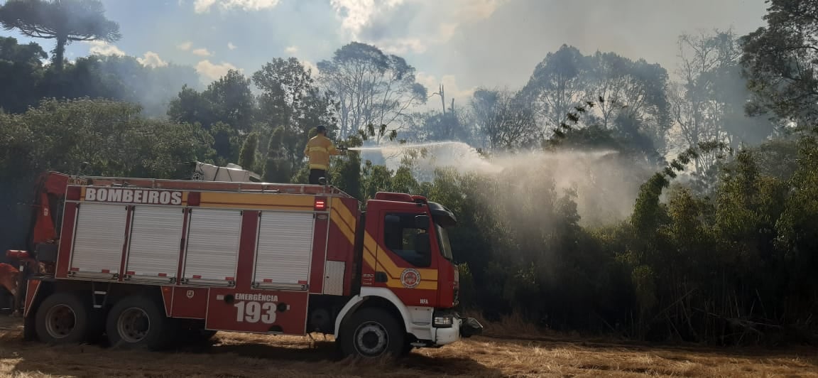 Corpo de Bombeiros de Mafra combate incêndio em lavoura de soja e mata nativa