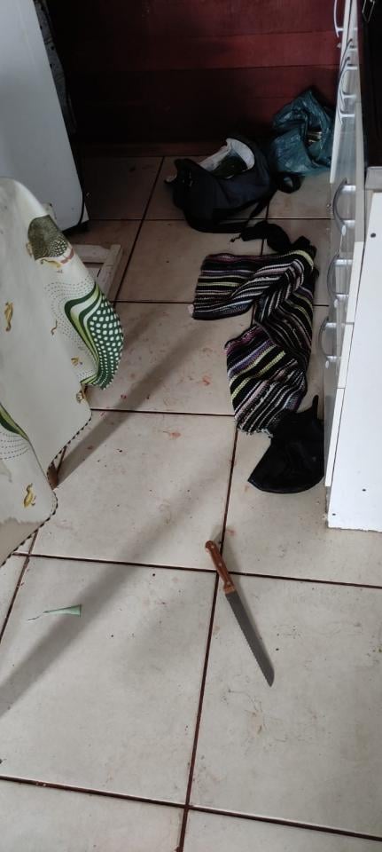 No local os policiais encontraram um homem de 48 anos de idade, o qual relatou que entrou em vias de fato com sua esposa, uma mulher de 28 anos de idade e que a atingiu com um golpe de faca na região do tórax e em seguida a levou para a Unidade de Pronto Atendimento (UPA), para ser medicada.