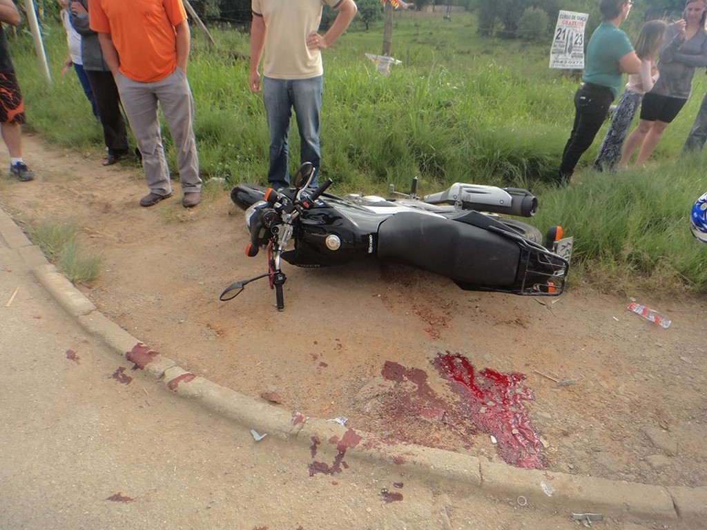 O condutor de 40 anos de a motocicleta Yamaha Fazer250, placa MKM-9027, de Mafra, foi encontrado pela equipe do Corpo de Bombeiros deitado na calçada de passeio, consciente, orientado, estável, com os sinais vitais normais, amparado por populares. O homem apresentava escoriações nos membros inferiores e membro superior esquerdo, também tinha escoriações no membro inferior esquerdo, um ferimento lacerante e fratura exposta na região da tíbia, além de hemorragia na fíbula.