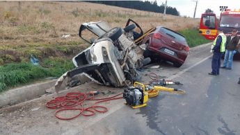 Com a chegada da PolÃcia Rodoviária Federal (PRF) e Instituto Geral de PerÃcias (IGP), os bombeiros desviraram os veÃculos e efetuaram o desencarceramento das vÃtimas que estavam mortas, deixando-os aos cuidados do Instituto Médico Legal. A PolÃcia Militar esteve no local e fez a segurança do trânsito.