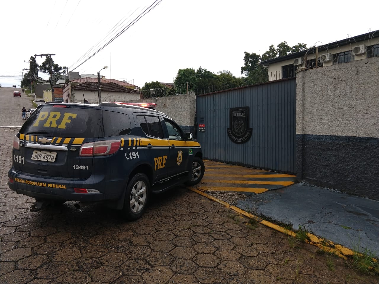 A PolÃcia Rodoviária Federal flagrou, na tarde de ontem (27), um condutor com mandado de prisão em aberto, expedido pela justiça estadual de Santa Catarina.