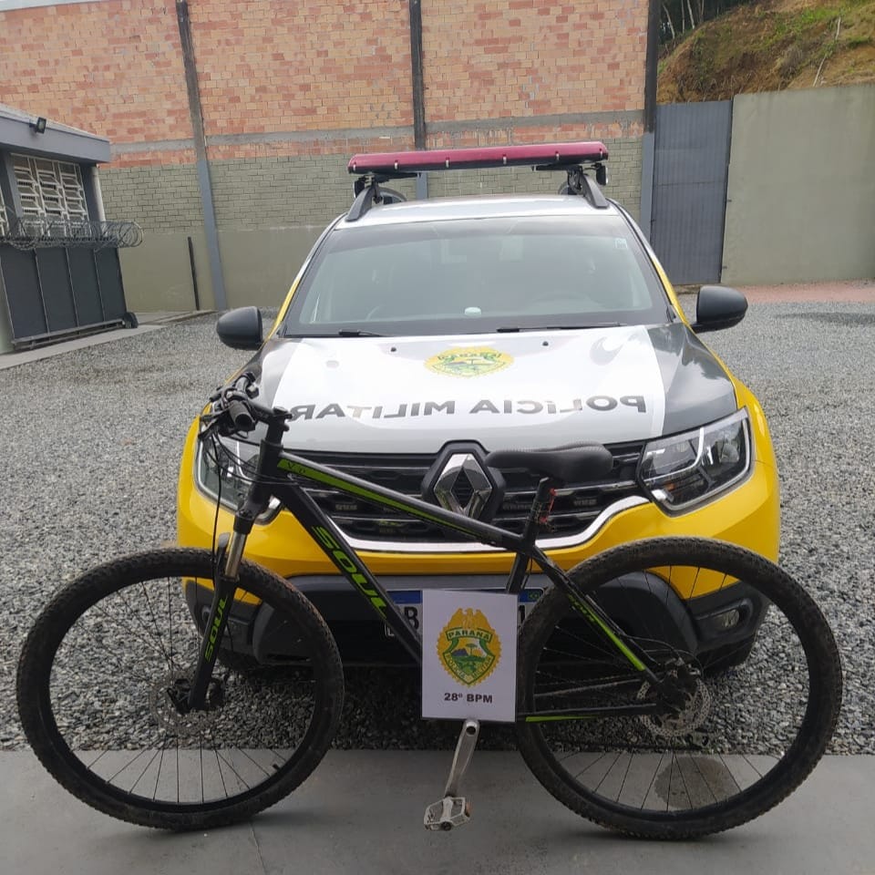 Na tarde deste domingo, uma equipe da PM em patrulhamento pela Vila Paraná, Rio Negro, avistou uma bicicleta, a qual foi furtada em dia anterior, encostada no muro de uma residência.
