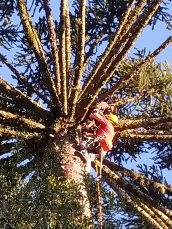 De imediato, duas viaturas se deslocaram ao local no bairro Lucena, sendo uma de resgate e outra pré-hospitalar. No local depararam com o homem preso entre os galhos do pinheiro.
