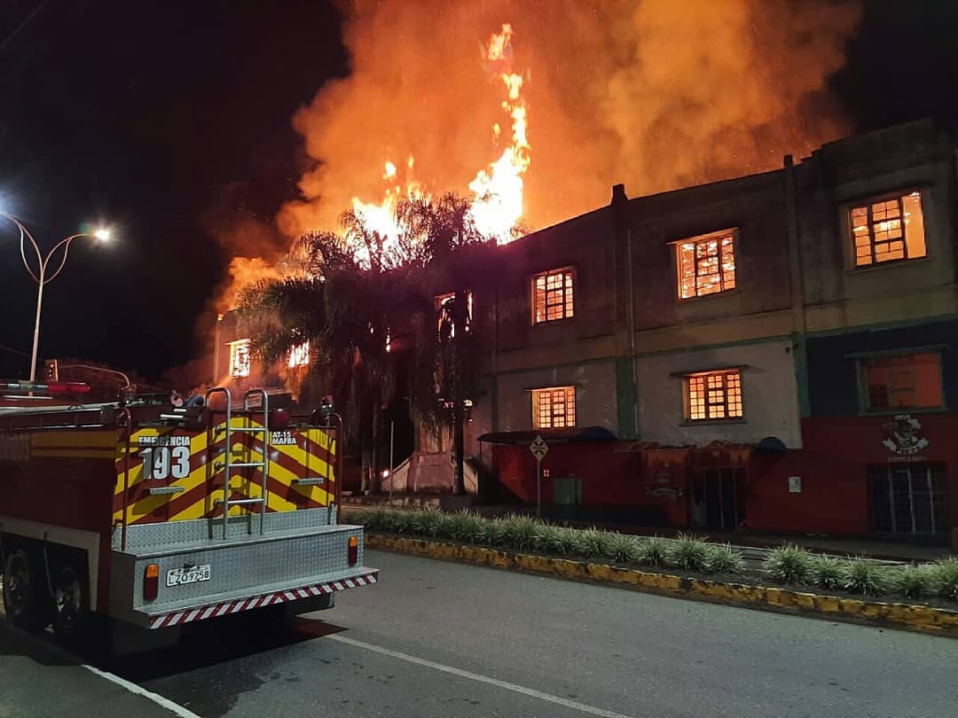 No local aparente informações e a confirmação que a edificação estava abandonada e sem energia elétrica, estruturada com paredes de alvenaria e telhado em madeira com telhas de barro. Foi iniciado o combate a chamas que alastravam-se do centro para todas as direções da edificação. O prédio já foi sede da antiga Cooperativa dos Ferroviários de Mafra.