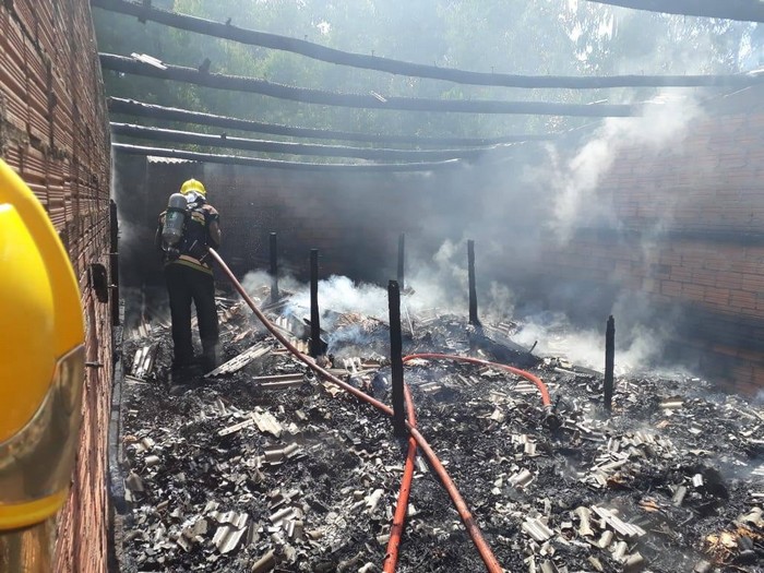 Os bombeiros utilizaram cerca de três mil litros de água para extinção e rescaldo do incêndio.