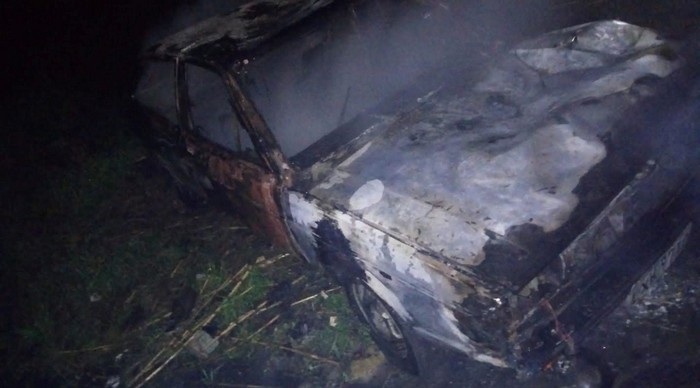 Chegando ao local mencionado, a equipe dos Bombeiros Voluntários, nada puderam fazer, encontraram o veÃculo totalmente destruÃdo pelas chamas do fogo.