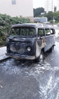 O Corpo de Bombeiros de Mafra foi acionado na tarde de hoje, por volta das 16h, para extinção de um incêndio em uma Kombi, na Rua José Cassias Pereira, próximo a UnC. No local as chamas tomavam todo o veÃculo, em especial a parte traseira e motor. Segundo o condutor, que não sofreu lesões, o fogo iniciou após uma explosão no motor.
