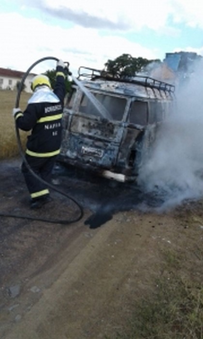 Um veÃculo VW/Kombi, placas de Rio Negrinho, se deslocava pela estrada geral da localidade da Vila Pscheidt, no interior do municÃpio de Mafra, quando entrou em pane e acabou pegando fogo, ficando totalmente destruÃda pelas chamas.