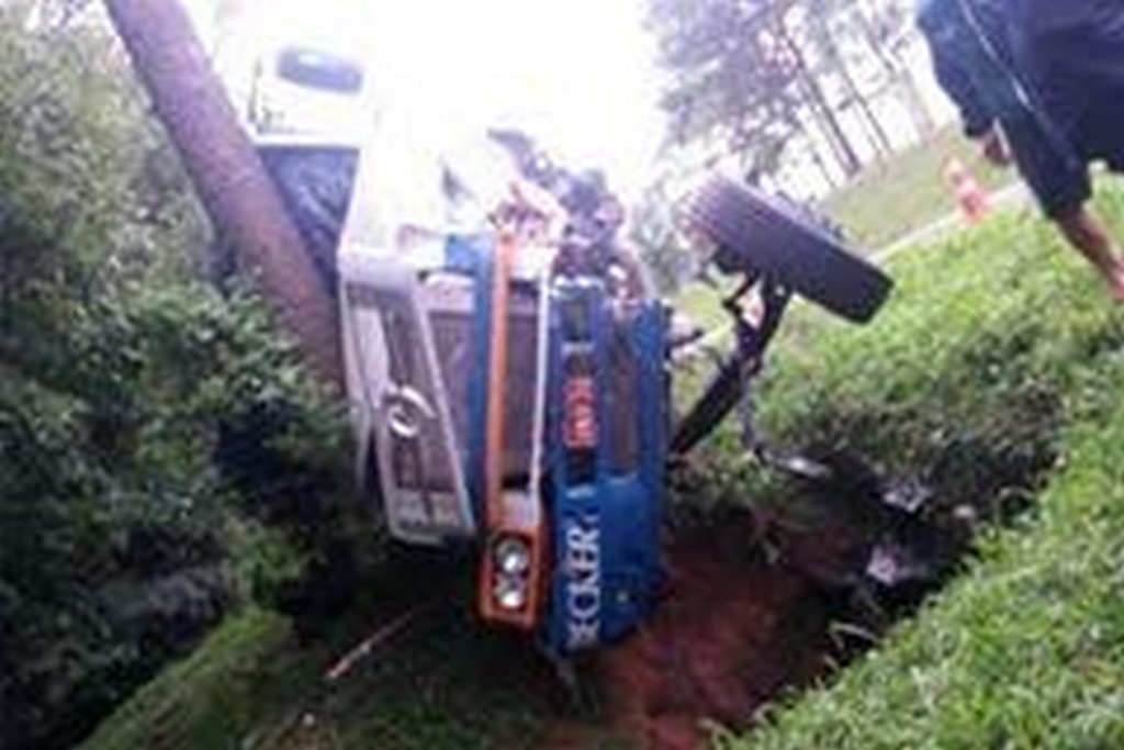 Com a força do impacto, até mesmo a carreta veio a sair da pista e tombar, enquanto que o veÃculo Renault/Clio ficou totalmente destruÃdo tendo perda total. Tiago Vieira teve morte instantânea. Os dois ocupantes da carreta tiveram lesões leves, apesar da gravidade do acidente.