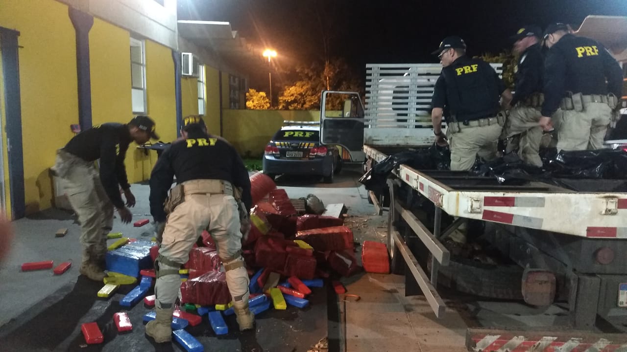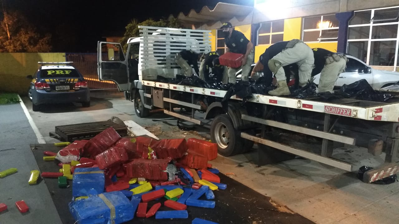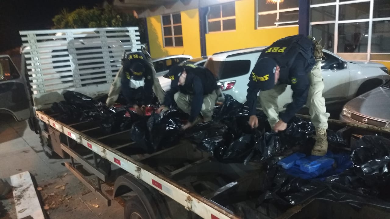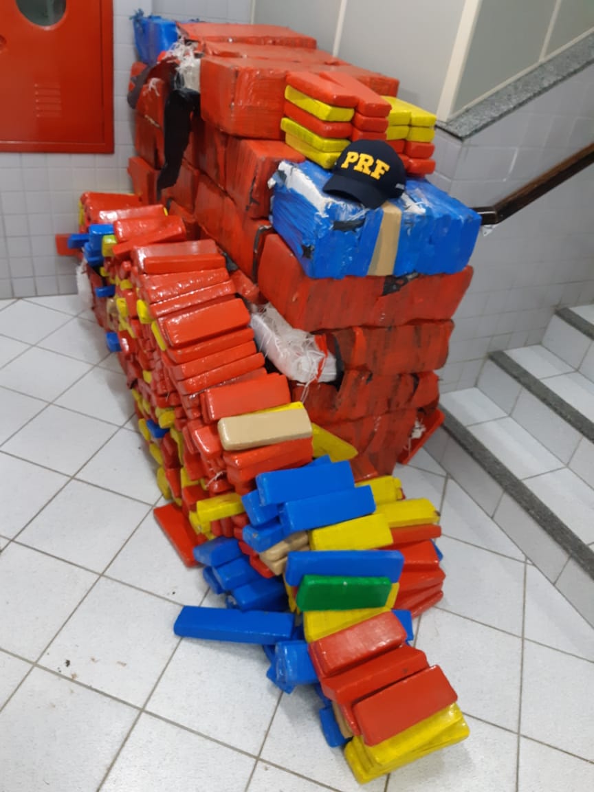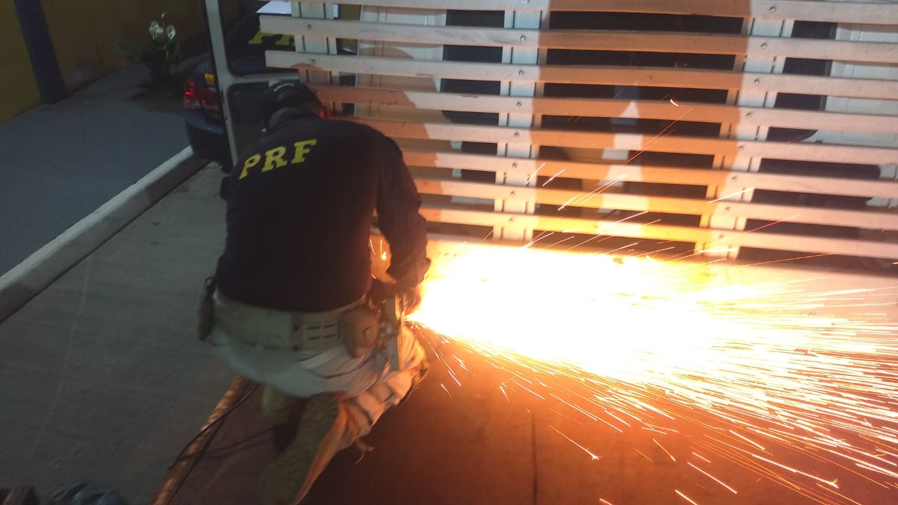 No entanto, ao vistoriar o compartimento de carga, encontraram cerca de 1.075 quilos de maconha prensada escondida em diversos fundos falsos. Foi preciso ajuda de um maçarico para acessar alguns locais do compartimentos.