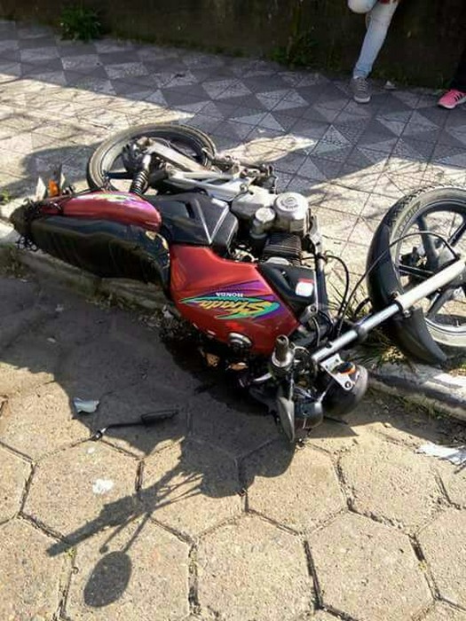 O acidente com colisão traseira entre a motocicleta Honda Strada (Mafra) e o veículo VW/Gol (Rio Negro), aconteceu na Avenida Frederico Heyse, esquina com Jorge Lacerda.