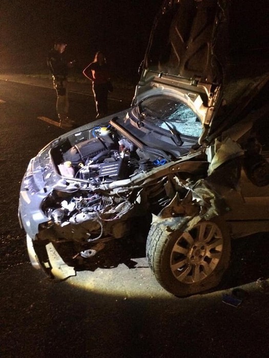 Por volta das 18h45min a guarnição do Corpo de Bombeiros de Mafra se deslocou até ao local na BR-280, nas proximidades do restaurante JM, para atender este grave acidente. No local os bombeiros depararam com os passageiros fora do veÃculo Fiat/Strada, placas de Mafra, o motorista de 27 anos e uma feminina de 24 anos, felizmente nada sofreram.