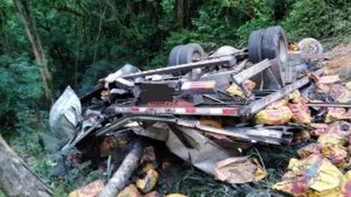 Chegando ao local foi constatado o fato, aonde nas proximidades da cascata Véu da Noiva o motorista de um caminhão veio a perder o controle e acabou caindo numa ribanceira.