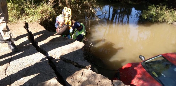 Motorista de veículo cai em ponte no rio São João devido a falta de sinalização