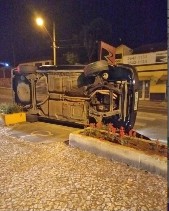 O motorista do veÃculo Monza de 29 anos de idade, veio a perder o controle do mesmo e acabou capotando na via. A equipe da PM perguntou seu o motorista aceitaria realizar o teste de bafômetro e o mesmo não se recusou o qual deu resultado positivo, acusando 0,71 mg/L de álcool no sangue.