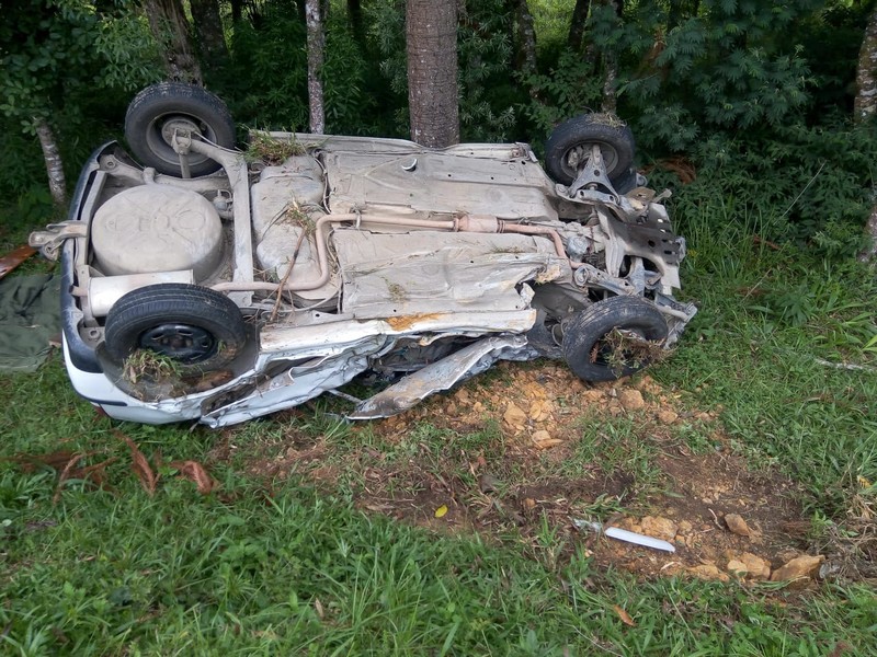 No veículo VW/Gol, placas de Canoinhas, acabou capotando devido a gravidade do impacto, estava o motorista de 41 anos e três passageiros, todos menores de idade. O motorista estava preso a ferragem e estava inconsciente e com ferimento na região frontal esquerda do crânio, laceração na região próxima ao ombro, hematoma na face e suspeita de traumatismo crânio encefálico.