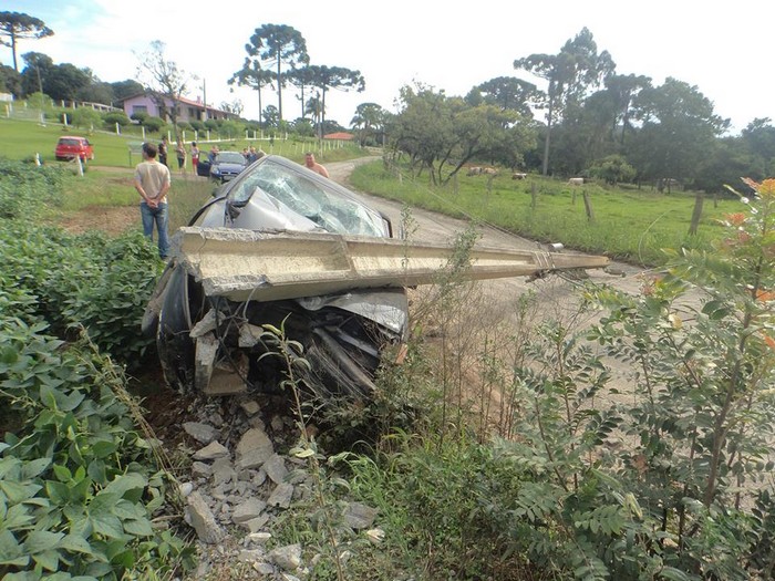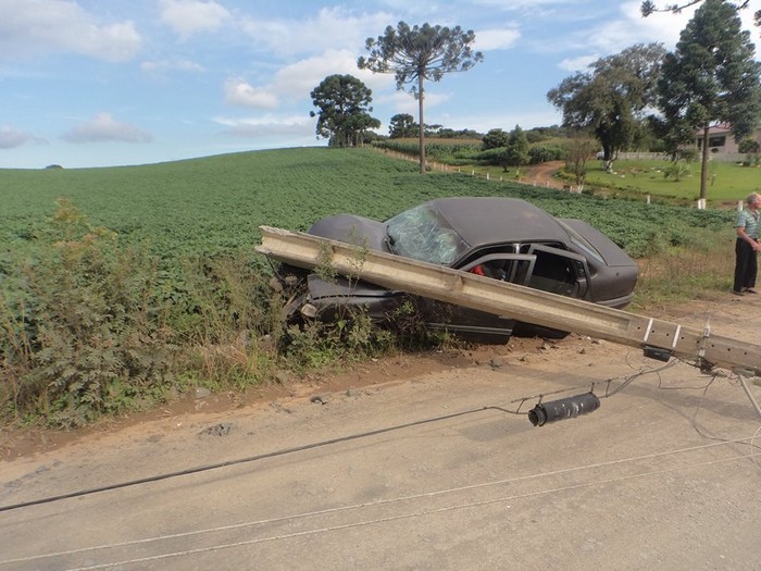 O motorista perdeu o controle do veÃculo GM/Vectra, placas de Mafra, numa curva de estrada de chão e acabou chocando-se contra um poste elétrico, aonde com a força do impacto chegou a quebrar, obstruindo a estrada geral do São Lourenço.