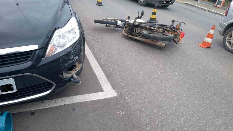 No inÃcio da tarde esta segunda-feira (09/12), por volta das 13h55min a equipe do Corpo de Bombeiros de Mafra se deslocaram até a Rua Marechal Floriano Peixoto, para atender um acidente de trânsito, envolvendo dois veÃculos e uma motocicleta.