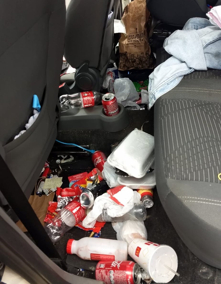 O motorista, de 25 anos, não era habilitado e o veÃculo que dirigia estava com licenciamento vencido há três anos. Ele transportava o filho dele, com apenas um ano de idade, em meio a muito lixo espalhado pelo carro.