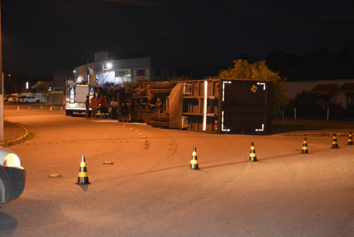 Uma imprudência de um motorista de 24 anos de idade, onde o mesmo comemorava aniversário e acabou preso em flagrante ao tombar o caminhão. Segundo a PM o rapaz momento antes, já havia batido numa Camionete VW/Amarok e fugiu para não arcar com os prejuÃzos.